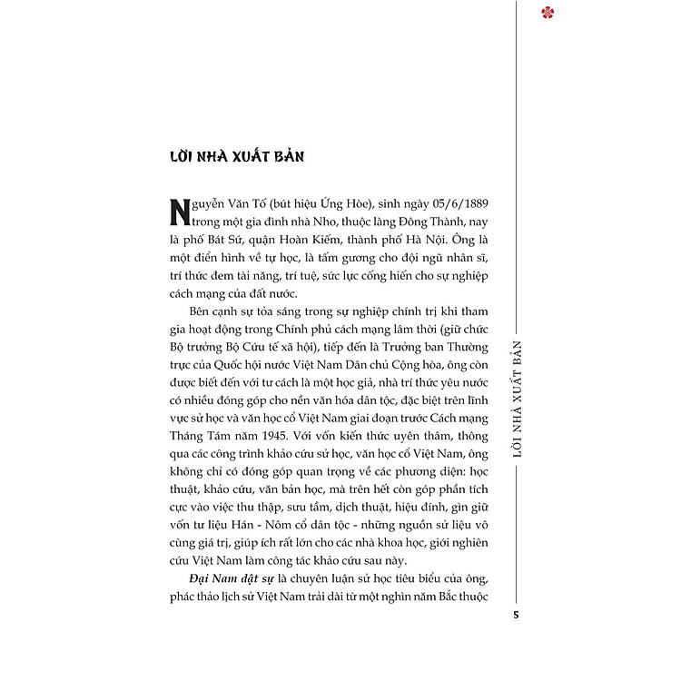 Nhằm mục đích cung cấp cho bạn đọc các chuyên luận sử học về thời kỳ Bắc thuộc và giai đoạn đầu của thời kỳ quân chủ trong lịch sử nước ta của học giả Ứng Hòe Nguyễn Văn Tố, Nhà xuất bản Chính trị quốc gia Sự thật xuất bản cuốn sách Đại Nam dật sự. Tên gọi của cuốn sách được Giáo sư Hà Văn Tấn giải thích, trong lần xuất bản đầu tiên năm 1997, kỷ niệm 50 năm ngày mất của cụ Nguyễn Văn Tố, như sau: Đại Nam dật sự là sử phẩm tái thông diễn về lịch sử Việt Nam. Bản thân cái tên “Đại Nam dật sự” có hàm nghĩa khôi phục lại những trang sử tản mát đã thất tán theo dòng thời gian 1. Mặc dù đã hết sức cố gắng, tuy nhiên, cuốn sách khó tránh khỏi những hạn chế, khiếm khuyết, rất mong nhận được những góp ý của độc giả, để cuốn sách được hoàn thiện hơn trong lần xuất bản sau.