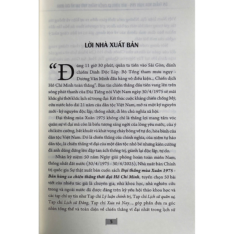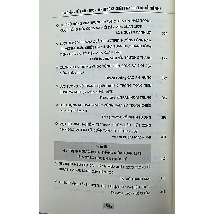 - Cuốn sách “Đại Thắng Mùa Xuân 1975” tuyển chọn 50 bài viết từ nhiều tác giả và chuyên gia trong và ngoài nước.