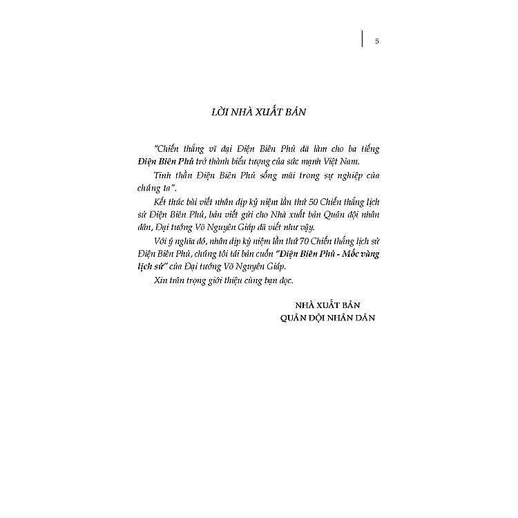 - Tựa sách: “Điện Biên Phủ – Mốc Vàng Lịch Sử” của Đại tướng Võ Nguyên Giáp.