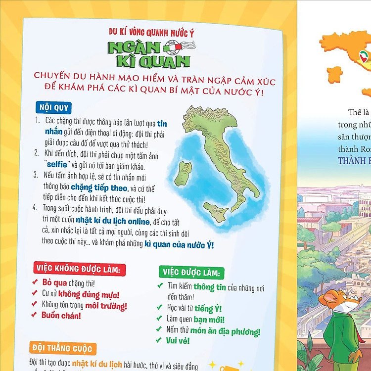 - Nội dung: Cuốn sách theo chân Geronimo Stilton khám phá văn hóa và vẻ đẹp của nước Ý.