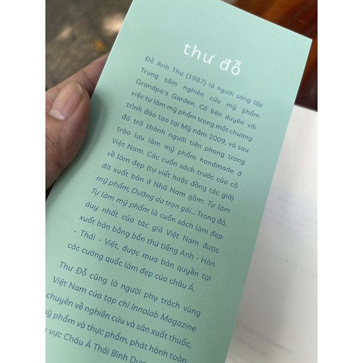 Đỗ Anh Thư (1987) là người sáng lập Trung tâm nghiên cứu mỹ phẩm Grandpa’s Garden. Cô bén duyên với việc tự làm mỹ phẩm trong một chương trình đào tạo tại Mỹ năm 2009, và sau đó trở thành người tiên phong trong trào lưu làm mỹ phẩm handmade ở Việt Nam. Các cuốn sách trước đó của cô về làm đẹp (tự viết hoặc đồng tác giả) đã xuất bản ở Nhã Nam bao gồm: Tự làm mỹ phẩm, Dưỡng da trọn gói, Trong đó, Tự làm mỹ phẩm là cuốn sách làm đẹp duy nhất của tác giả Việt Nam được xuất bản bằng bốn thứ tiếng Anh – Hàn – Thái – Việt, được mua bản quyền tại các cường quốc làm đẹp của châu Á.