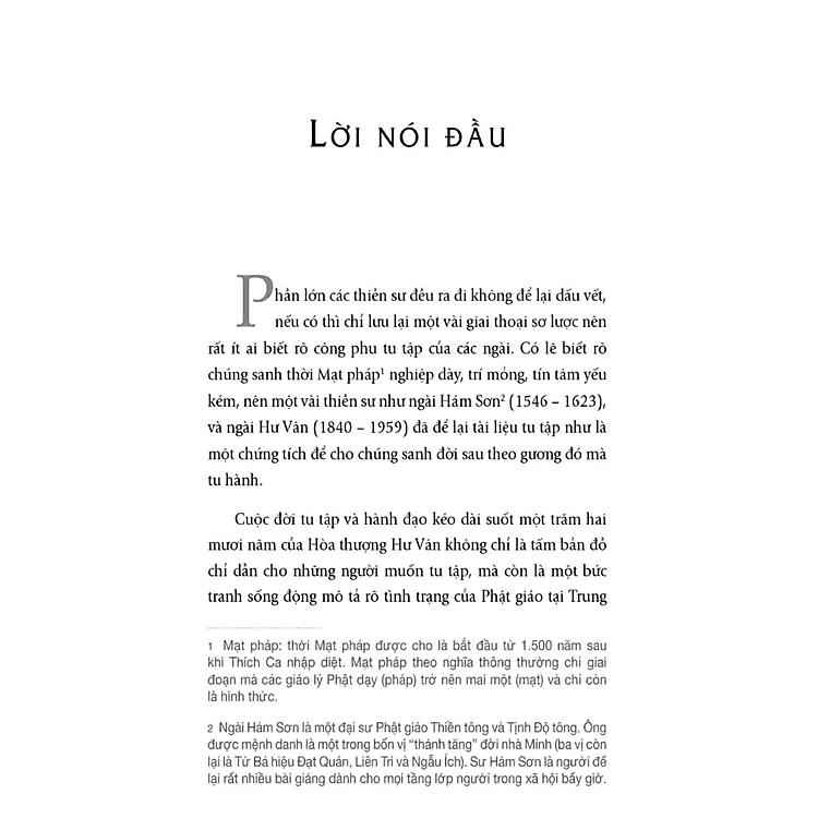 Phần lớn các thiền sư đều ra đi không để lại dấu vết, nếu có thì chỉ lưu lại một vài giai thoại sơ lược nên rất ít ai biết rõ công phu tu tập của các ngài. Có lẽ biết rõ chúng sanh thời Mạt pháp nghiệp dày, trí mỏng, tín tâm yếu kém nên một vài thiền sư đã để lại tài liệu tu tập như một chứng tích cho chúng sanh đời sau theo gương đó mà tu hành. Hiếm hoi trong đó có tập sách “Đường mây trên đất hoa” của Hòa thượng Hư Vân ghi chép lại chi tiết, cặn kẽ về cuộc đời tu hành và hoằng pháp của Ngài.
