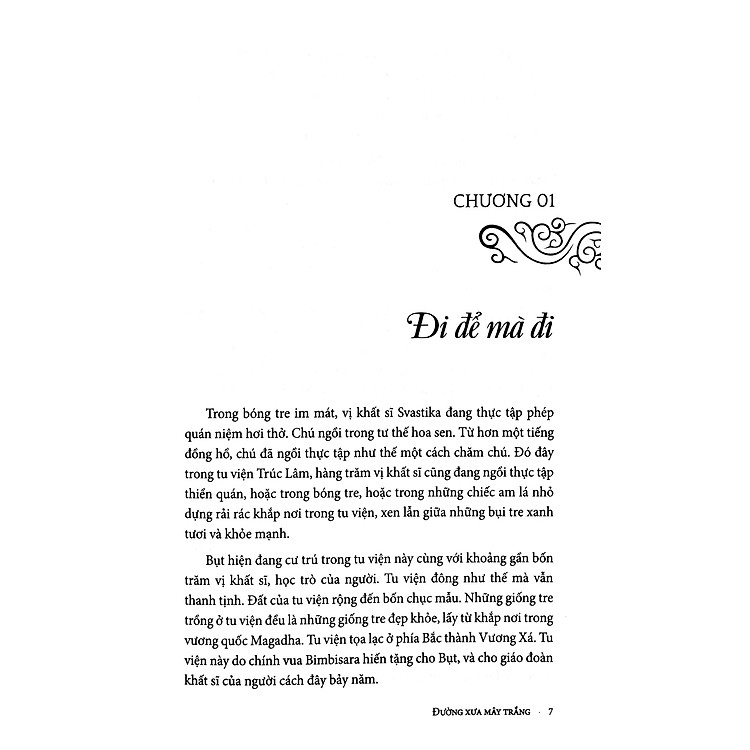 Tôi đã viết những chương của Đường Xưa Mây Trắng với rất nhiều hạnh phúc. Thỉnh thoảng tôi đứng dậy pha trà để uống. Mỗi ngày viết mấy giờ cũng như được ngồi uống trà với Đức Thế Tôn. Và tôi biết trước người đọc sẽ rất có hạnh phúc vì khi viết, mình cũng đang có rất nhiều hạnh phúc. Viết Đường Xưa Mây Trắng không phải là một lao động mệt nhọc mà là cả một niềm vui lớn. Đó là một quá trình khám phá.