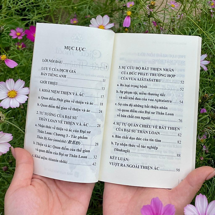 - Nội dung sách: Diễn thuyết về thiện và ác trong Phật giáo, sự cứu độ bất thiện nhân của Đức Phật A Di Đà.