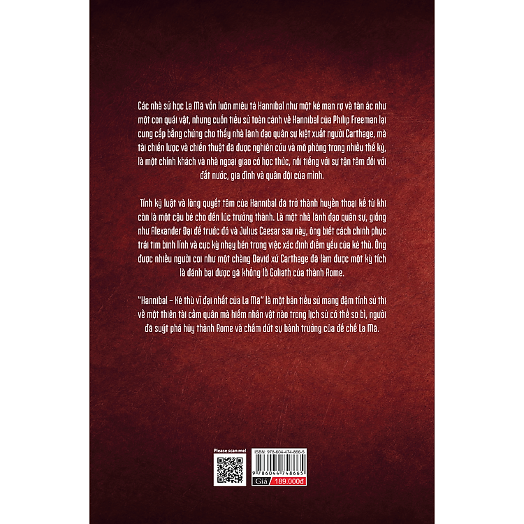 - Tựa đề: “Hannibal – Kẻ Thù Vĩ Đại Nhất Của La Mã” của tác giả Philip Freeman.