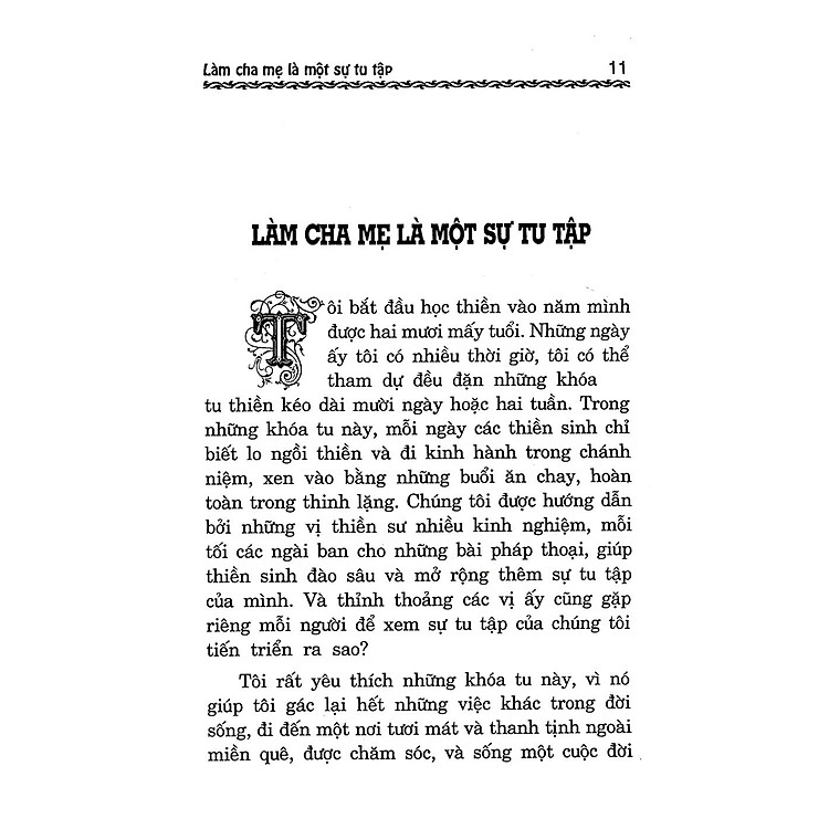 - Nội dung chính bao gồm: làm cha mẹ là sự tu tập, cạm bẫy trên đường, và chánh niệm không chỉ là tâm linh.