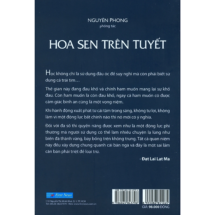 Không phải cuốn sách nói về triết học hay Phật giáo, cũng không hẳn là tự truyện được kể bởi một triệu phú, dù đó là nhân vật chính, Hoa sen trên tuyết là hành trình tìm kiếm bản thân của rất nhiều người. Chỉ để trả lời cho câu hỏi: Câu trả lời đích thực về ý nghĩa cuộc sống là gì?