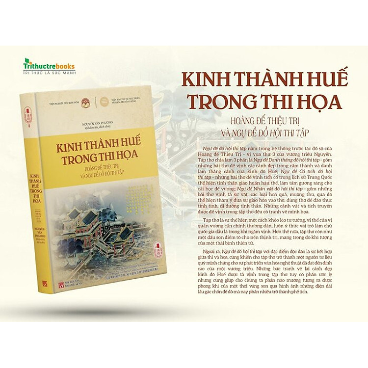 - Tên sách: “Kinh thành Huế trong thi họa – Hoàng đế Thiệu Trị và Ngự đề đồ hội thi tập” của Nguyễn Văn Phương.