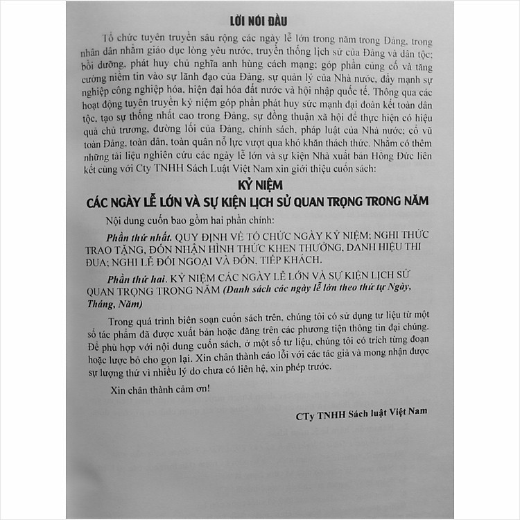 - Tên sách: Kỷ Niệm Các ngày Lễ Lớn Và Sự Kiện Lịch Sử Quan Trọng Trong Năm