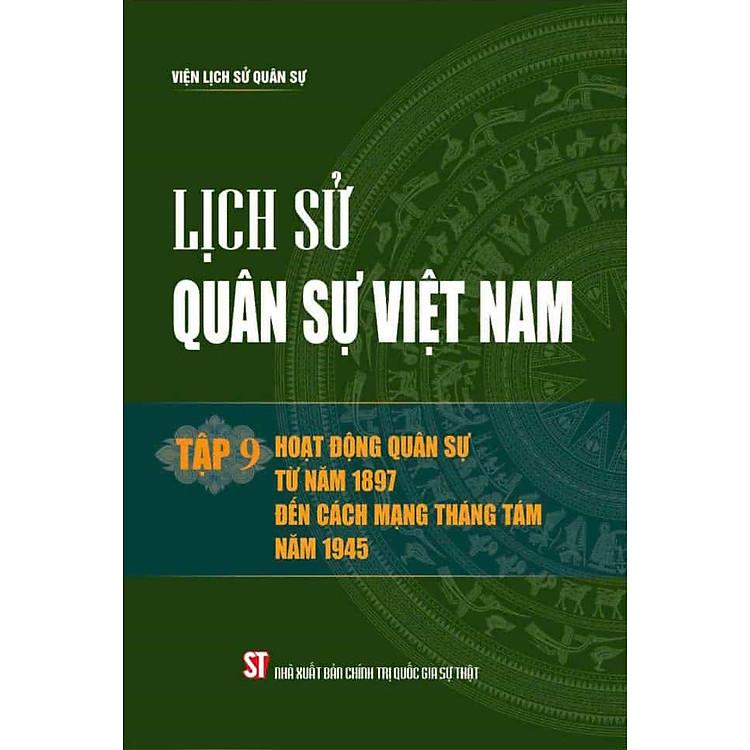 Lịch sử Quân sự Việt Nam. Tập 9: Hoạt động quân sự từ năm 1897 đến Cách mạng Tháng Tám 1945, bao gồm những hoạt động quân sự của dân tộc trong giai đoạn từ khi thực dân Pháp bắt đầu tiến hành khai thác thuộc địa ở nước ta (1897) đến Cách mạng tháng Tám 1945, trong đó gồm những phong trào chống đế quốc và phong kiến, sự xuất hiện tư tưởng quân sự Hồ Chí Minh, quá trình xây dựng lực lượng và đấu tranh vũ trang dưới sự lãnh đạo của Đảng Cộng sản Việt Nam tiến tới thắng lợi rực rỡ của Cách mạng Tháng Tám.