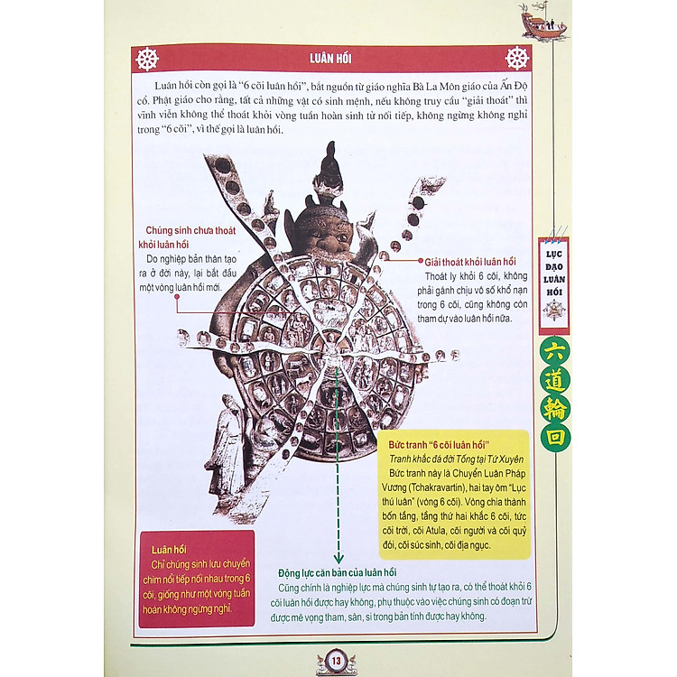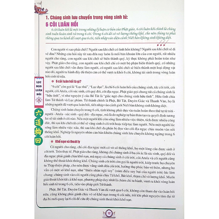 - Khái niệm lục đạo: Bao gồm 6 cõi: trời, người, Atula, súc sinh, quỷ đói, địa ngục; chỉ ra vòng luân hồi và nghiệp lực.