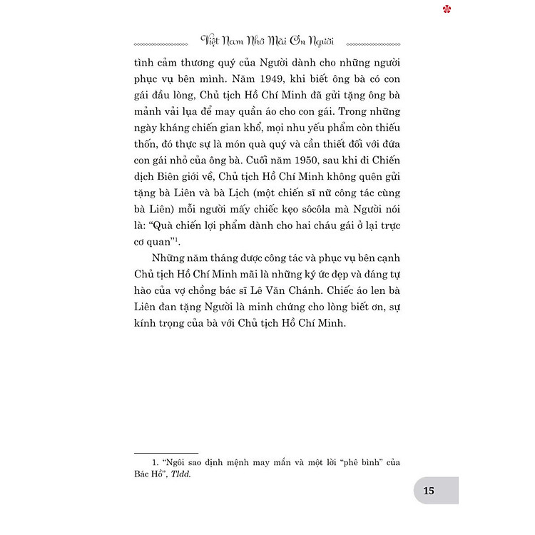 Các kỷ vật trong cuốn sách được sắp xếp theo trình tự thời gian tặng với ba phần nội dung chính: Phần I: Việt Nam nhớ mãi ơn Người Phần II: Thắm tình bạn bè quốc tế Phần III: Hành trình kỷ vậtGiá sản phẩm trên Tiki đã bao gồm thuế theo luật hiện hành. Bên cạnh đó, tuỳ vào loại sản phẩm, hình thức và địa chỉ giao hàng mà có thể phát sinh thêm chi phí khác như phí vận chuyển, phụ phí hàng cồng kềnh, thuế nhập khẩu (đối với đơn hàng giao từ nước ngoài có giá trị trên 1 triệu đồng)…..