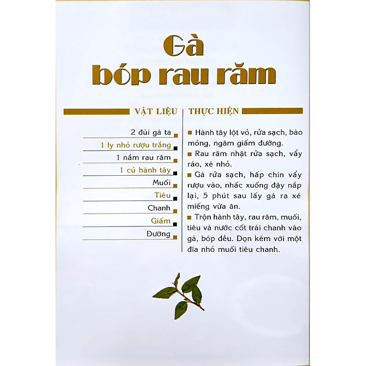 - Cuốn sách chứa công thức chế biến món ăn đơn giản và ngon miệng.