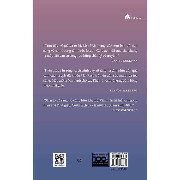 Joseph Goldstein là một Phật tử, giáo thọ trong phần lớn cuộc đời trưởng thành của mình và là một thành viên sáng lập của Hiệp hội Thiền Minh Quán (Insight Meditation Society). Ông là ví dụ cho một kiểu Phật tử mới mà chúng ta thấy ở phương Tây ngày nay. Thay vì bám chặt vào một truyền thống duy nhất, ông đã học với rất nhiều vị thầy, kết nối các phương diện khác nhau của nhiều truyền thống Phật giáo vào sự thực hành của mình. Đã có nhiều tiền lệ trong lịch sử cho cách tiếp cận như vậy. “Chứa đầy trí tuệ và lòng từ bi, Một Pháp cung cấp một bản đồ rực rỡ về con đường tâm linh.” (Daniel Goleman, tác giả của Trí tuệ cảm xúc).