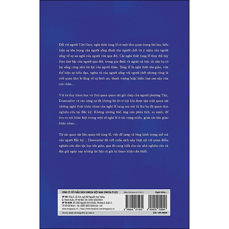 - Nội dung: Cuốn sách “Nghi thức tang lễ của người An Nam” phân tích và mô tả các nghi thức tang lễ truyền thống ở Việt Nam.