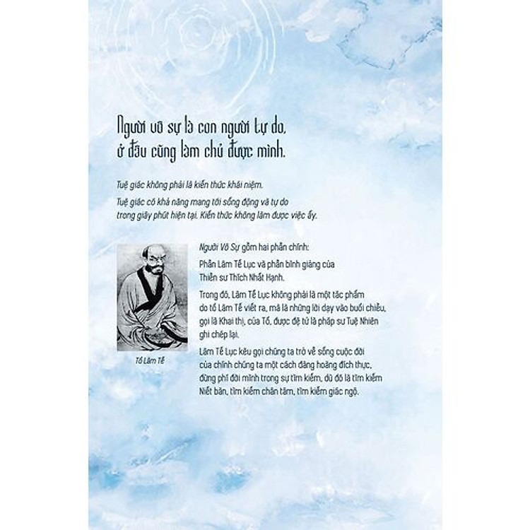 - Cuốn sách “Người Vô Sự” gồm hai phần chính: “Lâm Tế Lục” và bình giảng của Thiền sư Thích Nhất Hạnh.