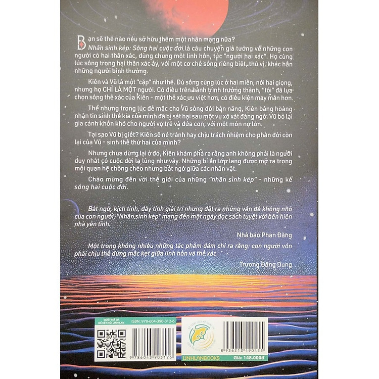 Chào mừng đến với thế giới của những “nhân sinh kép” – những kẻ sống hai cuộc đời. Một tác phẩm hòa trộn khéo léo giữa giả tưởng và trinh thám, với một ý tưởng mạnh mẽ, giọng văn sinh động, đưa ra cái nhìn độc đáo về cách vận hành của thế gian và trách nhiệm của mỗi người với vai trò một cá thể. Đồng thời, tác phẩm là bước tiến trong phong cách kể chuyện đặc trưng của tác giả Đảo bạo bệnh và Thiên thần mù sương.