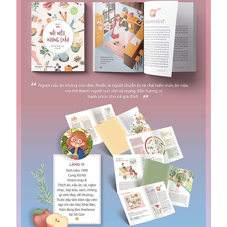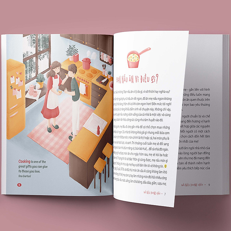 Sách đúng là phù hợp với tôi, người mất căn bản bếp núc và đang tập tành nấu ăn :)) Thiết kế sách nhỏ gọn mà đầy đủ, minh hoạ dễ thương sinh động