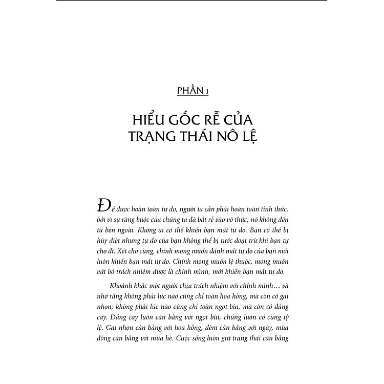 - Cuốn sách khuyến khích người đọc khám phá những trở ngại đối với tự do cá nhân và sống thật với chính mình.
