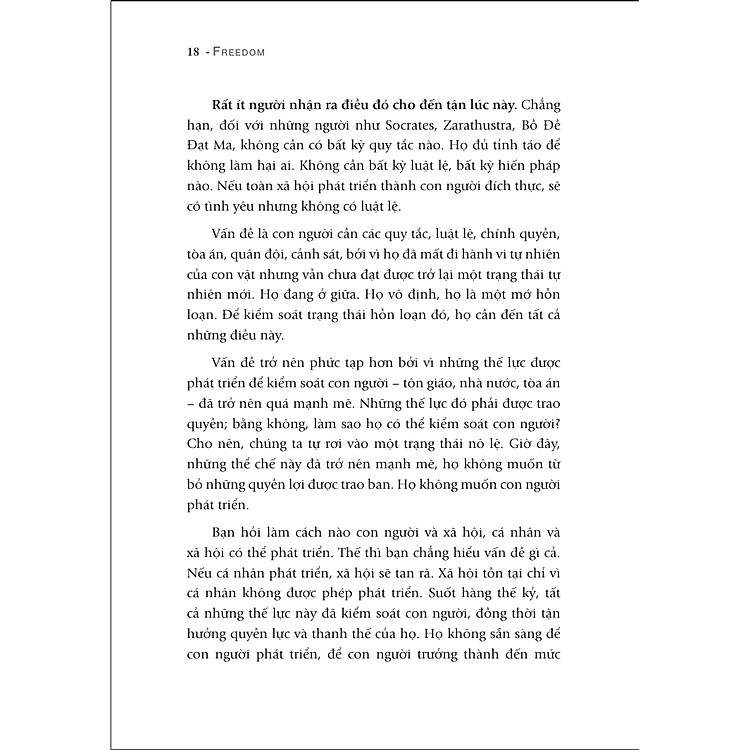 Trong “Tự do – Như chim tung cánh”, Osho bàn đến một trong những vấn đề quan trọng nhất đối với tâm thức con người: tự do. Trong suốt chiều dài lịch sử, con người luôn kêu đòi tự do, luôn đấu tranh vì tự do. Đó có phải là tự do mà Osho nói đến không? Bản chất của tự do là gì?