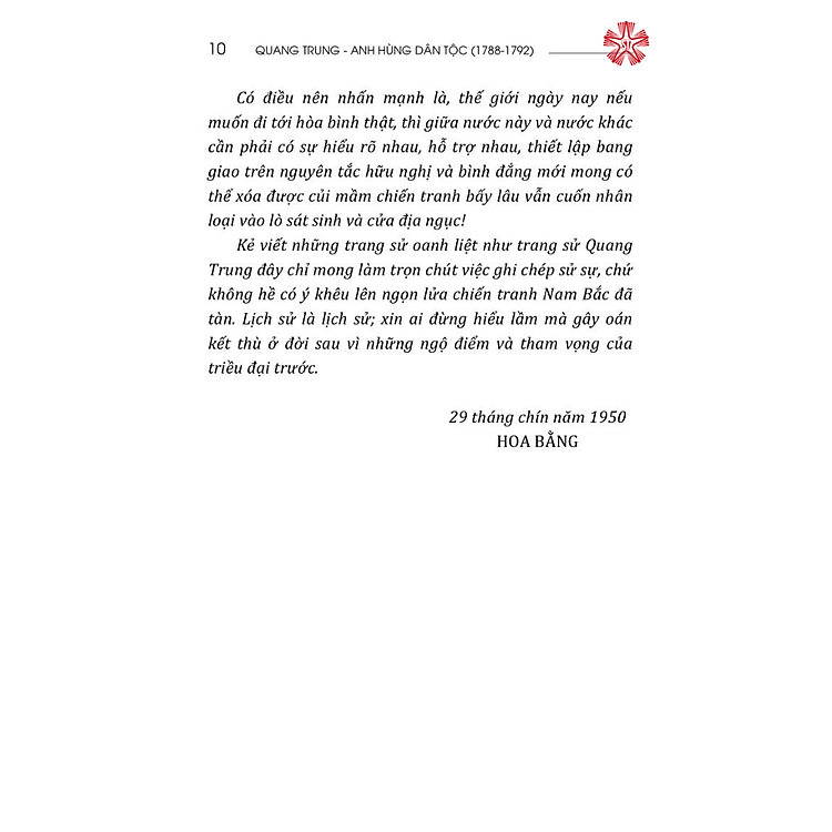 - Tựa đề: “Quang Trung – Anh hùng dân tộc (1788-1792)” của tác giả Hoa Bằng.