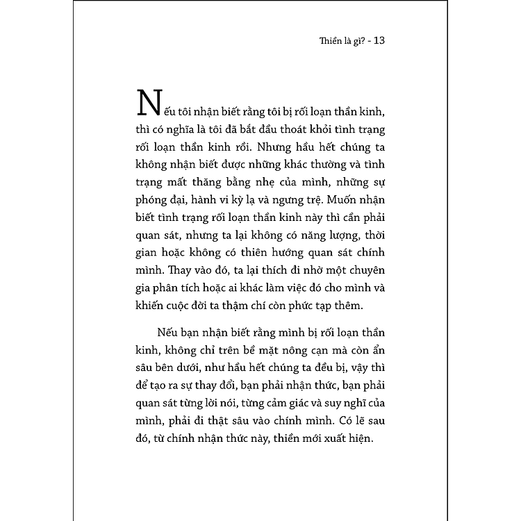 Và quan trọng hơn hết, thiền là sự tự do vượt thoát mọi điều đã biết. “Thiền không phải là tụng niệm những từ ngữ, ngồi trong góc tối, nhìn vào những sự phóng chiếu, hình ảnh và ý niệm của chính mình. Thiền là làm sáng tỏ cái đã biết và tự giải thoát mình khỏi cái đã biết.” Qua mỗi trang, mỗi câu, ta dần dần tự xây dựng cho mình cách hiểu riêng và khai ngộ về thiền.