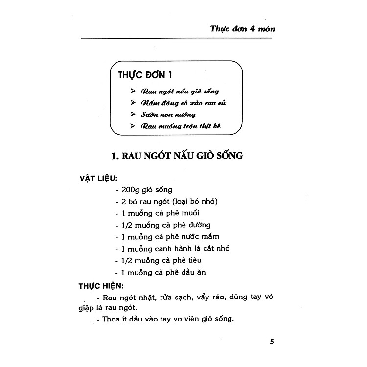 - Hướng dẫn chế biến 27 thực đơn, mỗi thực đơn gồm 4 món ăn.