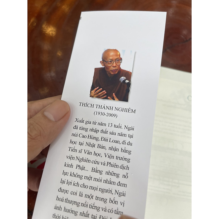 Thích Thánh Nghiêm (1930-2009), xuất gia từ năm 13 tuổi. Ngài đã từng nhập thất sáu năm tại núi Cao Hùng, Đài Loan, đi du học tại Nhật Bản, nhận bằng Tiến sĩ Văn học, Viện trưởng viện Nghiên cứu và Phiên dịch kinh Phật… Bằng những nỗ lực không mệt mỏi nhằm đem lại lợi ích cho mọi người, Ngài được coi là một trong bốn vị hòa thượng nổi tiếng và có tầm ảnh hưởng nhất tại Đài Loan.