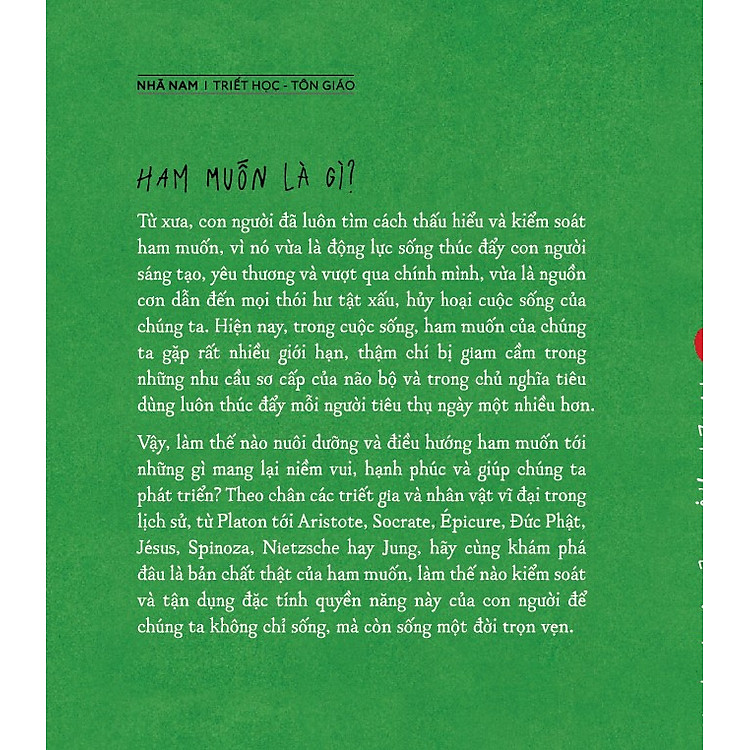 Vậy, làm thế nào nuôi dưỡng và điều hướng ham muốn tới những gì mang lại niềm vui, hạnh phúc và giúp chúng ta phát triển? Theo chân các triết gia và nhân vật vĩ đại trong lịch sử, từ Platon tới Aristote, Socrate, Espicure, Đức Phật, hãy cùng khám phá đâu là bản chất thật của ham muốn, làm thế nào kiểm soát và tận dụng đặc tính quyền năng này của con người để chúng ta không chỉ sống, mà còn sống một đời trọn vẹn.