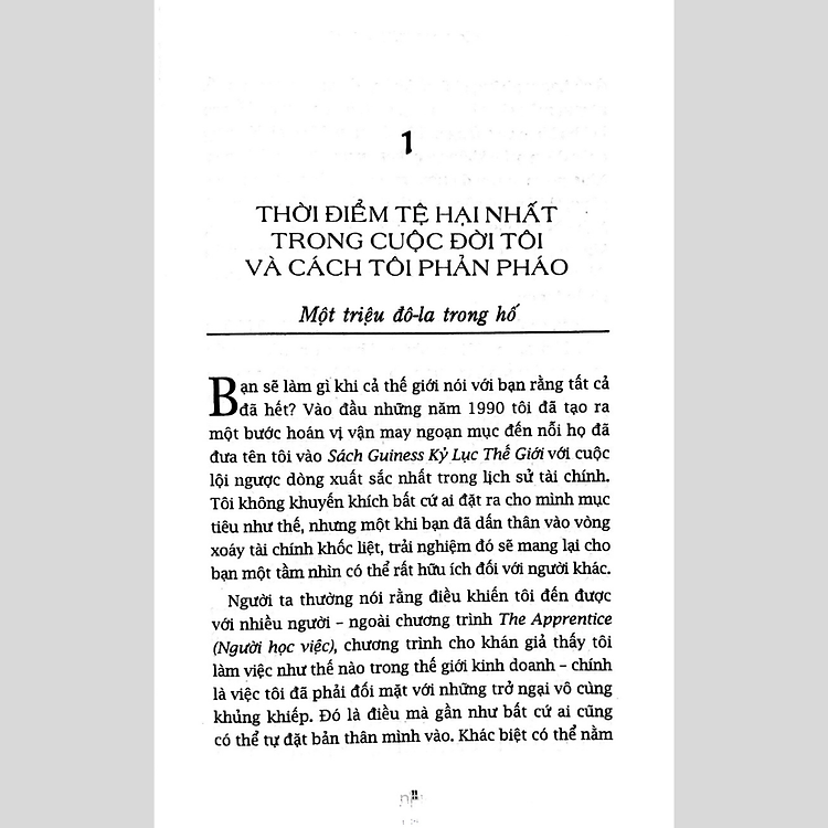 Cuốn sách còn đưa ra những lời khuyên đắt giá trong kinh tế: cách phản pháo khi gặp thất bại và trở ngại; biến những vấn đề lớn thành những cơ hội thậm chí còn lớn hơn; cách biến kẻ thù và địch thủ thành bạn bè và đồng minh; cách tận dụng những thất bại trước mắt làm động lực cho bản thân bạn – và khiến bạn kiên cường hơn.