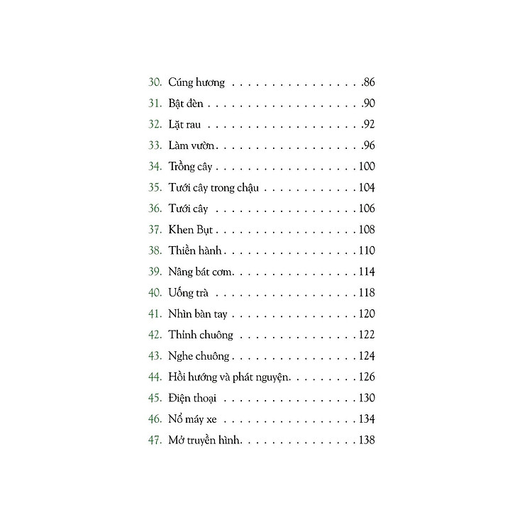 - Sống tỉnh thức: Hướng dẫn cách biến những hoạt động hàng ngày thành những khoảnh khắc chánh niệm và an lạc.