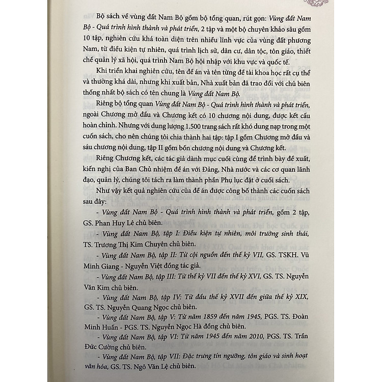 Xuất bản bộ sách Vùng đất Nam Bộ tác giả Trương Thị Kim Chuyên và Nhà xuất bản Chính trị quốc gia Sự thật hy vọng cung cấp cho bạn đọc, các nhà nghiên cứu, học viên, sinh viên các học viện, nhà trường và các nhà lãnh đạo, quản lý, các địa phương, đơn vị một khối tri thức lớn , khá đầy đủ, toàn diện và chân xác về vùng đất Nam Bộ, phục vụ cho công tác học tập nghiên cứu và hoạch định chính sách ở khu vực trọng yếu, năng động này của đất nước.
