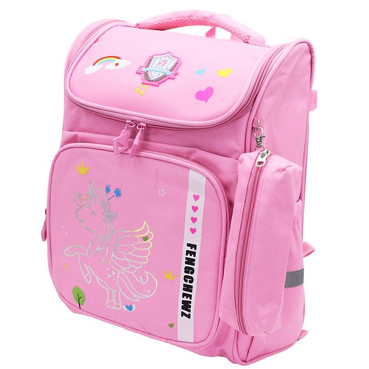 Ba Lô Bé Gái Học Sinh Chống Gù Kèm Bóp Viết – Hình Kỳ Lân – Hong Sheng 9882 – Màu Hồng