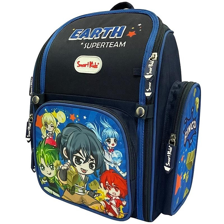 - Ba lô học sinh chống gù Smart Kids – Earth Super Team B-013, màu xanh đen.