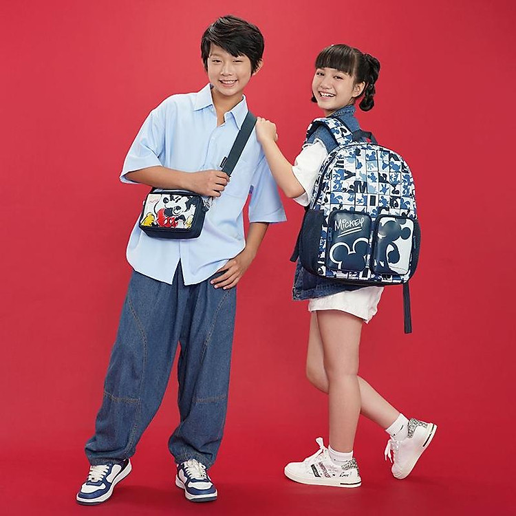 - Hai ngăn nhỏ phía trước tiện lợi, có biểu tượng Mickey đặc trưng.