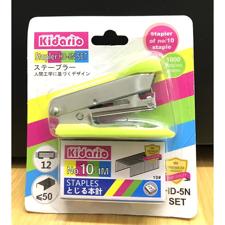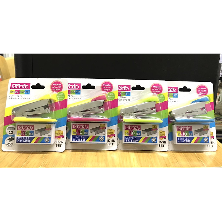 - Sét Bấm Kim Kidario Số 10 Mini và Kim Bấm HD-5N SET bao gồm 12 tờ, thiết kế nhỏ gọn dễ sử dụng.