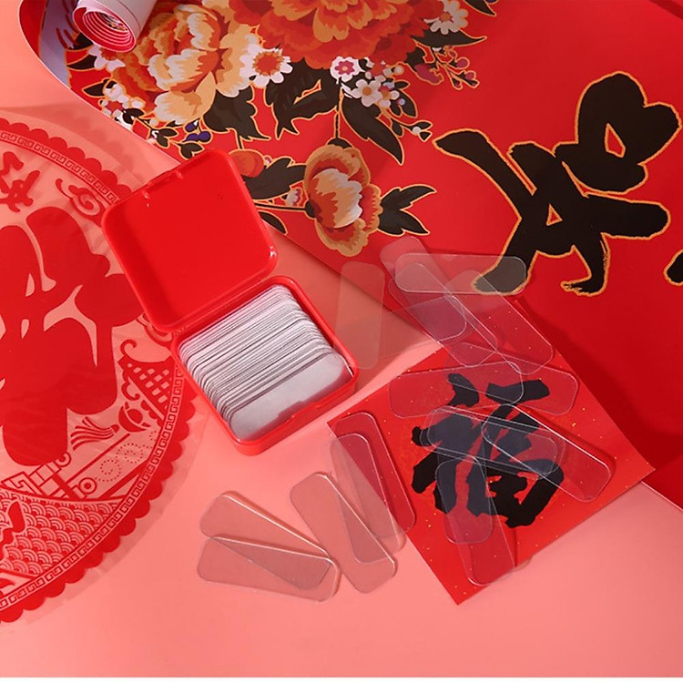- Hộp 60 miếng băng keo dán 2 mặt trong suốt, siêu dính và chống nước.