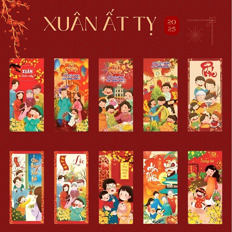 - Set gồm 10 bao lì xì Tết 2024 với mẫu mã ngẫu nhiên.
