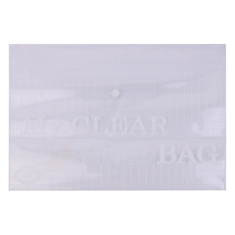 Sản phẩm chất lượng tốt như hình, bìa My CLEAR dày vừa phải, nút bấm chắc chắn, kín đáo. Mình thích loại này do 2 biên ép lệch vô khoảng 10mm, loại ép sát biên dễ nứt rách. Kích thước A4: 32 x 23cm gọn gàng.