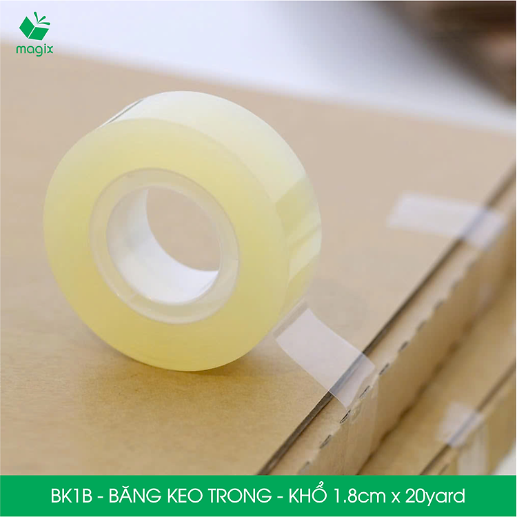 - Băng keo trong khổ 1.8cm x 20yard, thiết kế nhỏ gọn và tiện lợi.