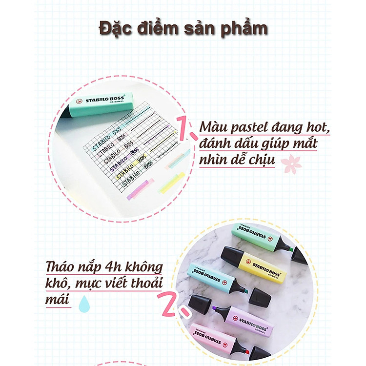 - Bút dạ quang STABILO BOSS Original Pastel sản xuất tại Đức