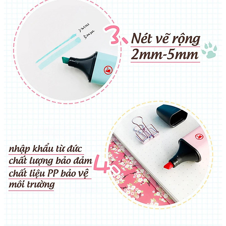 - Bút highlighter pastel với công nghệ chống khô 4 giờ