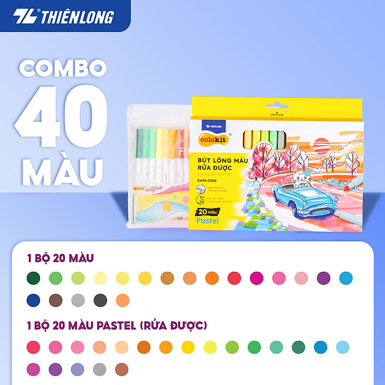 - Combo bút lông màu Fiber Pen Thiên Long Colokit có 3 lựa chọn: 76 màu, 56 màu và 40 màu.