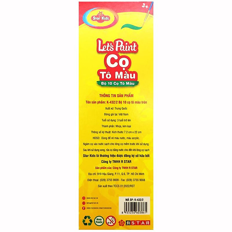 - Bộ 10 cọ tô màu tròn Let’s Paint – Star Kids K-432/2, dành cho trẻ từ 3 tuổi trở lên.