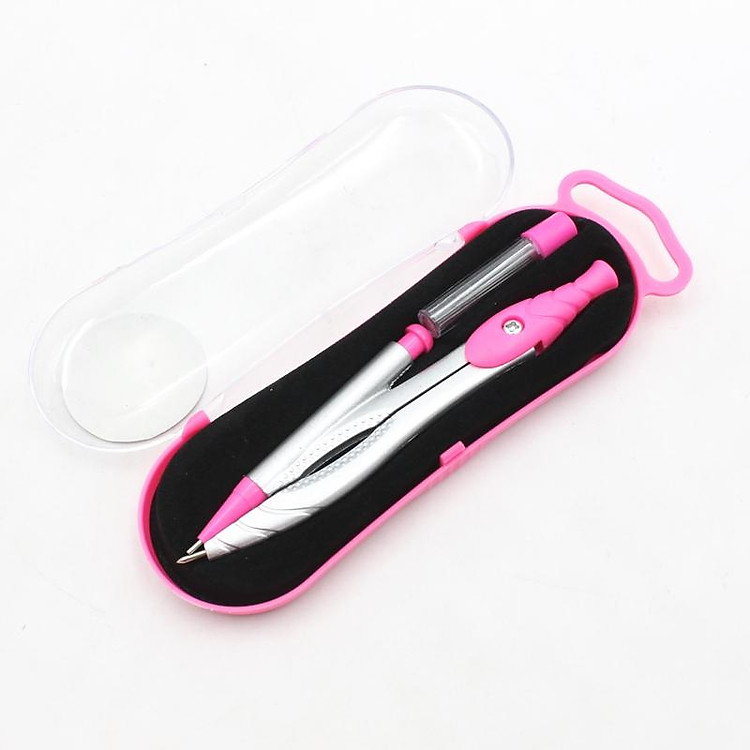 - Bộ sản phẩm bao gồm compa, bút chì kim và ngòi chì, màu hồng.