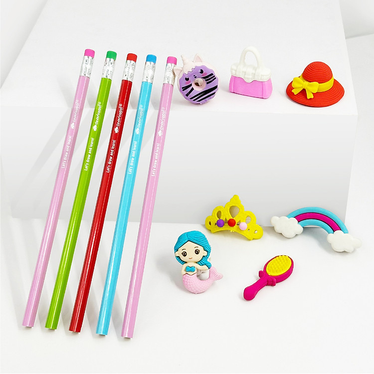 - Bộ sản phẩm combo gôm và bút chì Magic Kingdom Clever Hippo PS03 kết hợp giữa Nàng tiên cá và các phụ kiện xinh xắn.