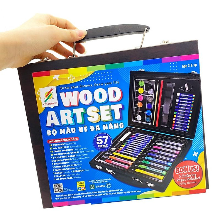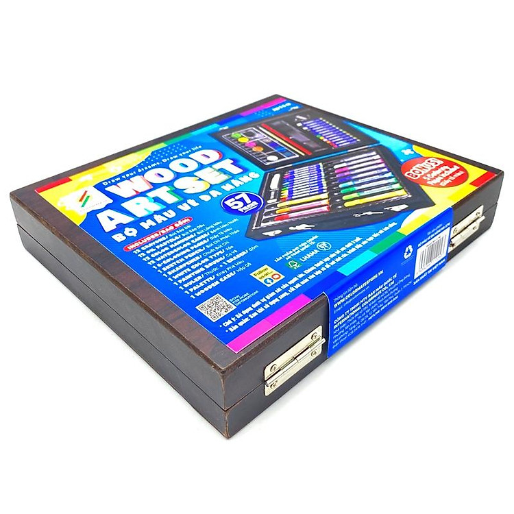 - Bộ Màu Vẽ Đa Năng Hộp Gỗ MS gồm 57 chi tiết, phù hợp cho trẻ em.