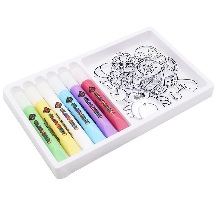 - Sản phẩm bao gồm 6 bút màu vẽ và 6 suncatcher để bé thỏa sức sáng tạo.