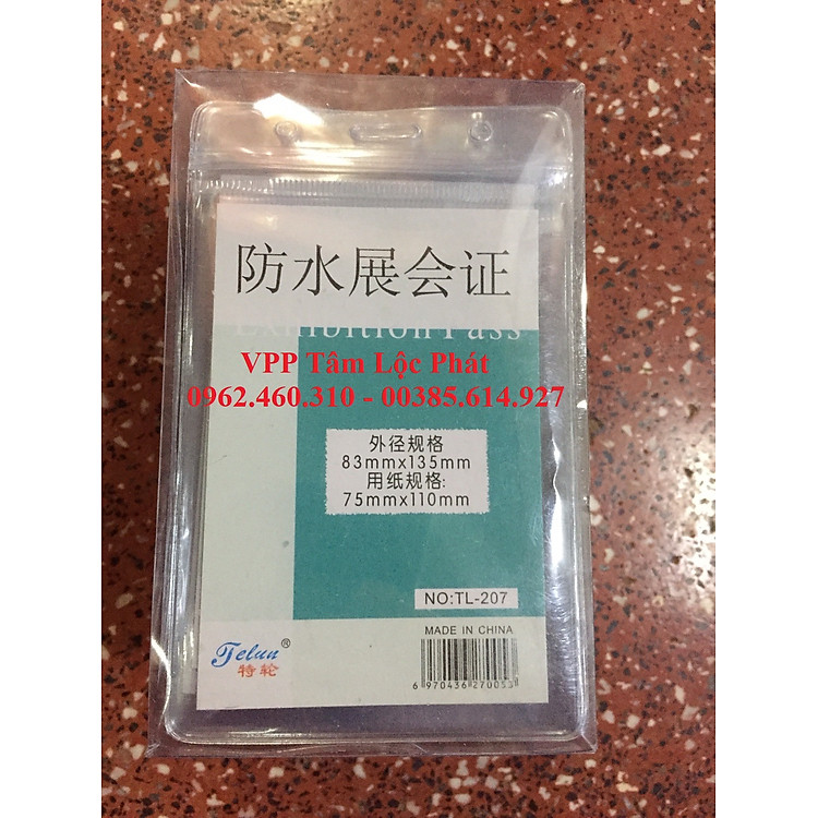 - Bao thẻ tên 207 có kích thước ngoài 83mm x 135mm, kích thước trong 75mm x 110mm, chống thấm nước.