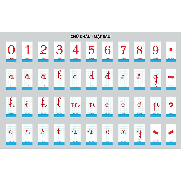 - Bộ thẻ học thông minh dành cho trẻ em, gồm 44 thẻ: 29 chữ cái tiếng Việt, 10 thẻ số và 5 thẻ thanh dấu.